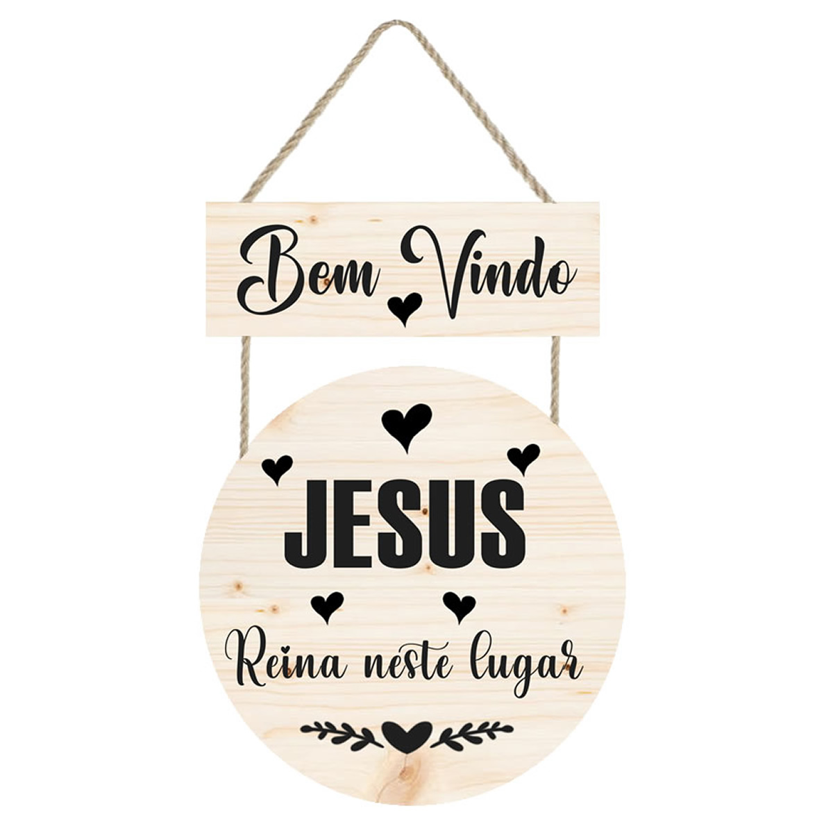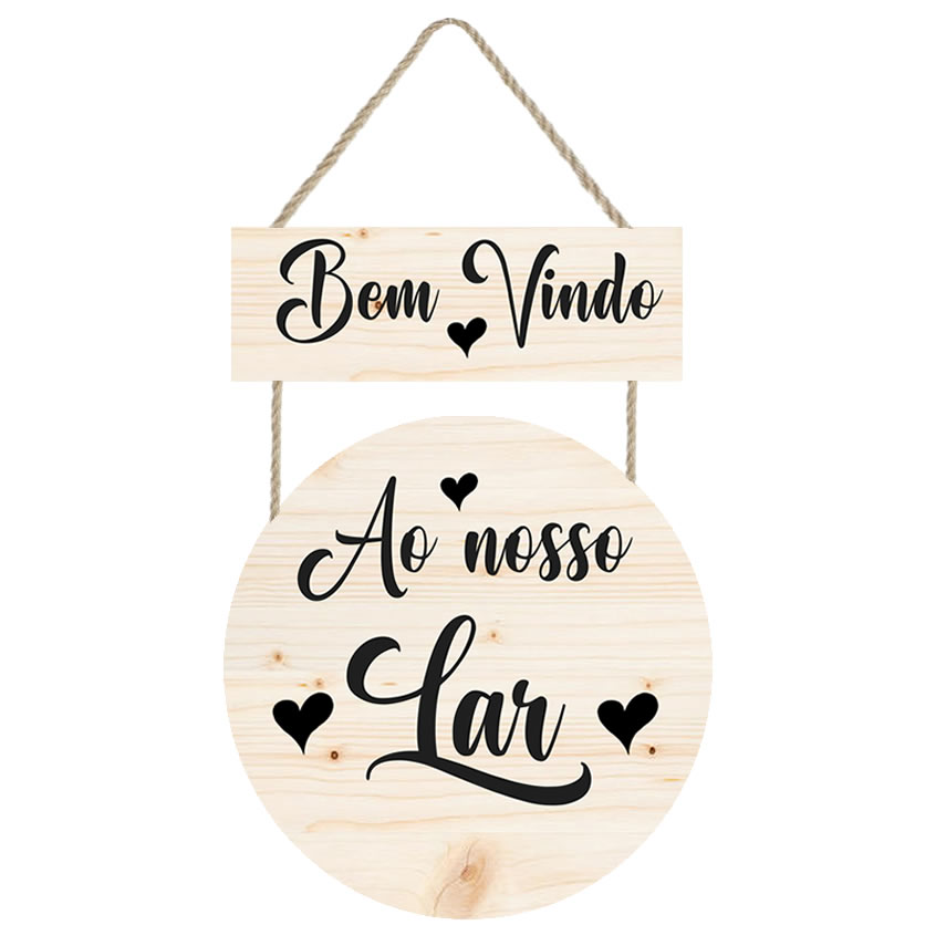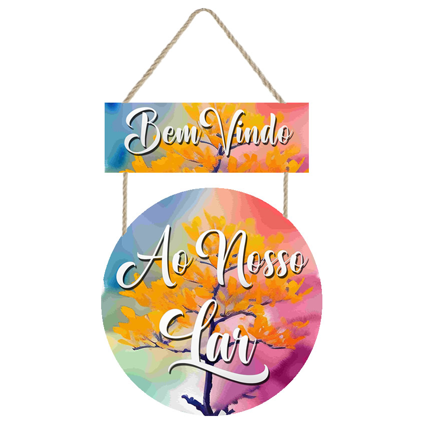 PL098 | Placa decorativa redonda Frase Bem Vindo cod PL098 | Personalizados | Placa decorativa feito em mdf com corda de sisal Imagem impressa papel Couchê de alta qualidade, placas em MDF 6 mm, corda sisal resistente. Medida total do Quadro: 1 plaquinha em mdf presa com gr... | R$15,90 |