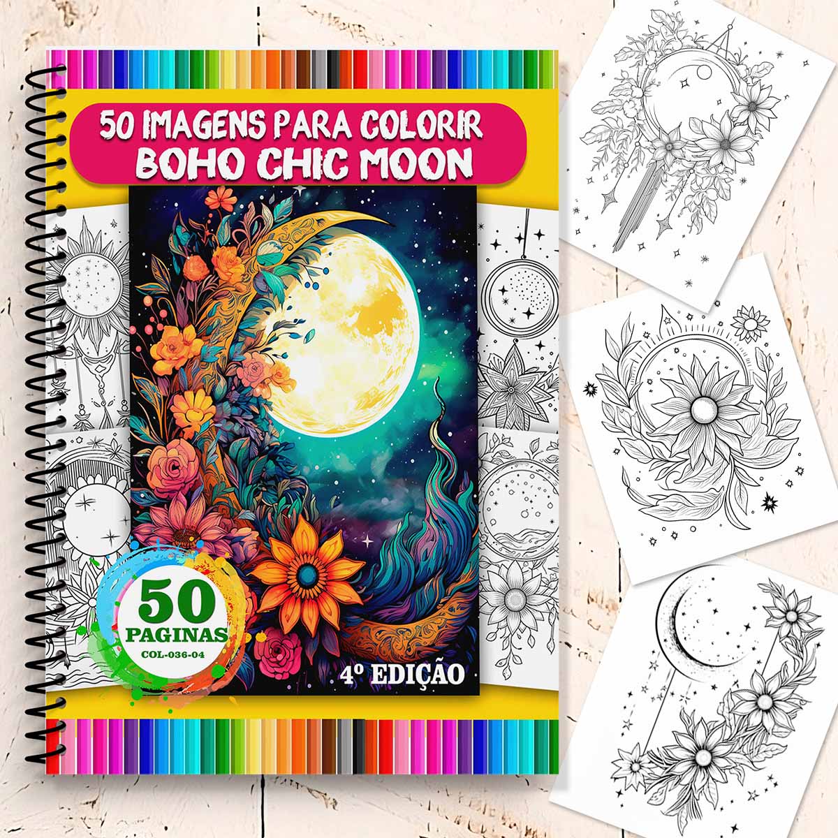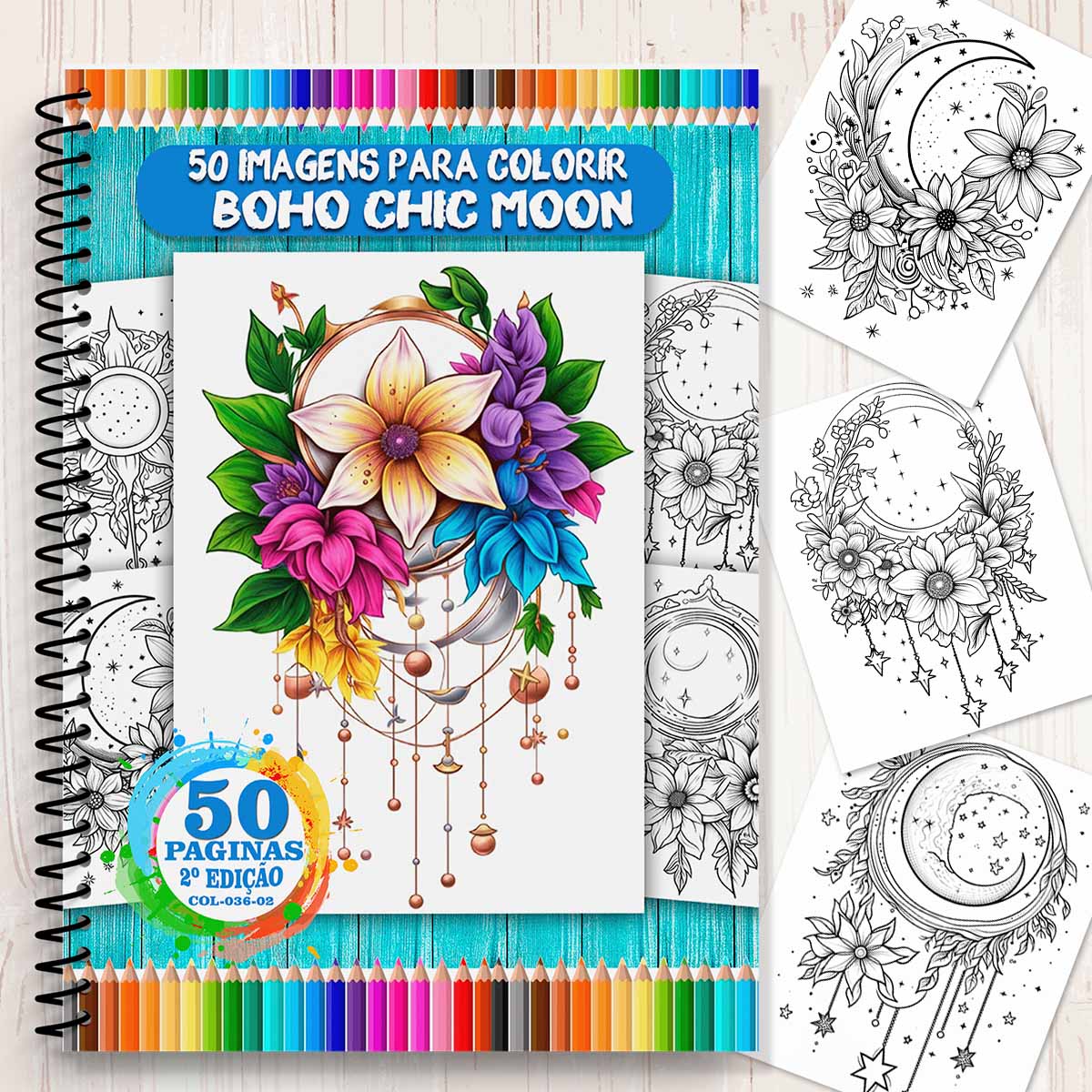 COL036-02 | Livro para Colorir Boho Chic Moon 2ª Edição - 50 Desenhos Místicos COL036-02 | Livro para colorir | Livro para Colorir Boho Chic Moon 2ª Edição - 50 Desenhos Místicos Desperte sua criatividade com luas crescentes, mandalas celestiais e elementos boho que transformam cada... | R$26,90 |