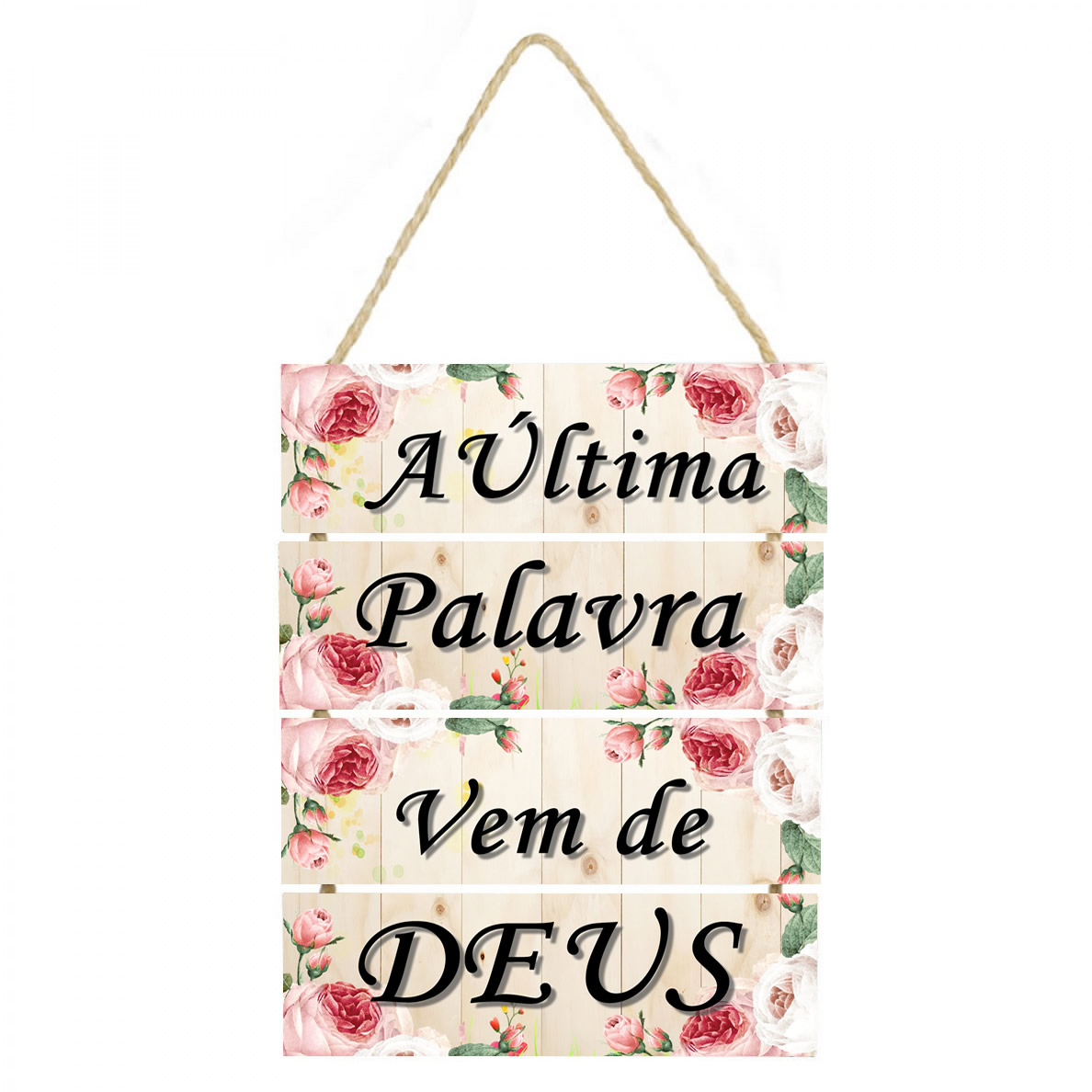 PL260 | Placa decorativa Nunca foi sorte sempre foi Deus PL260 | Livros e Revistas | Placa decorativa feito em mdf com corda de sisal Imagem impressa papel Couche de alta qualidade, placas em MDF 6 mm, corda sisal resistente. Medida total do Quadro: São 3 plaquinhas em mdf presas... | R$18,00 |