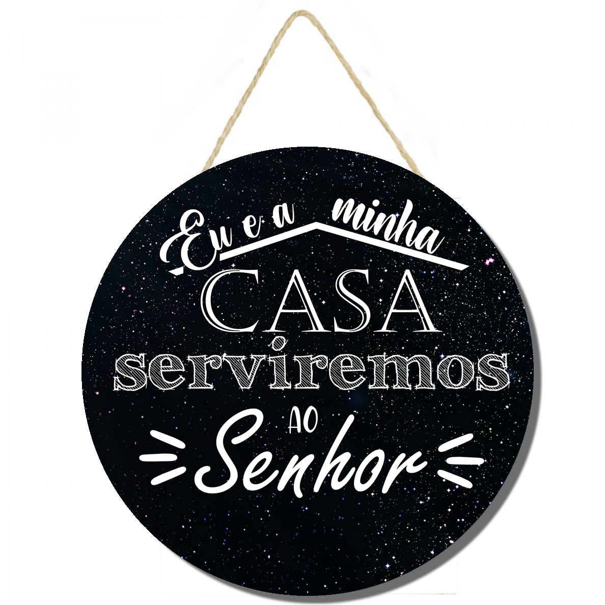 591 | Placa decorativa redonda Eu e minha casa serverimos cod 212 | Personalizados | Placa decorativa redonda Eu e minha casa serverimos cod 212 Placa decorativa feito em mdf preso com corda de sisal Imagem impressa papel de alta qualidade, placas em MDF 6 mm, corda sisal resiste... | R$15,00 |