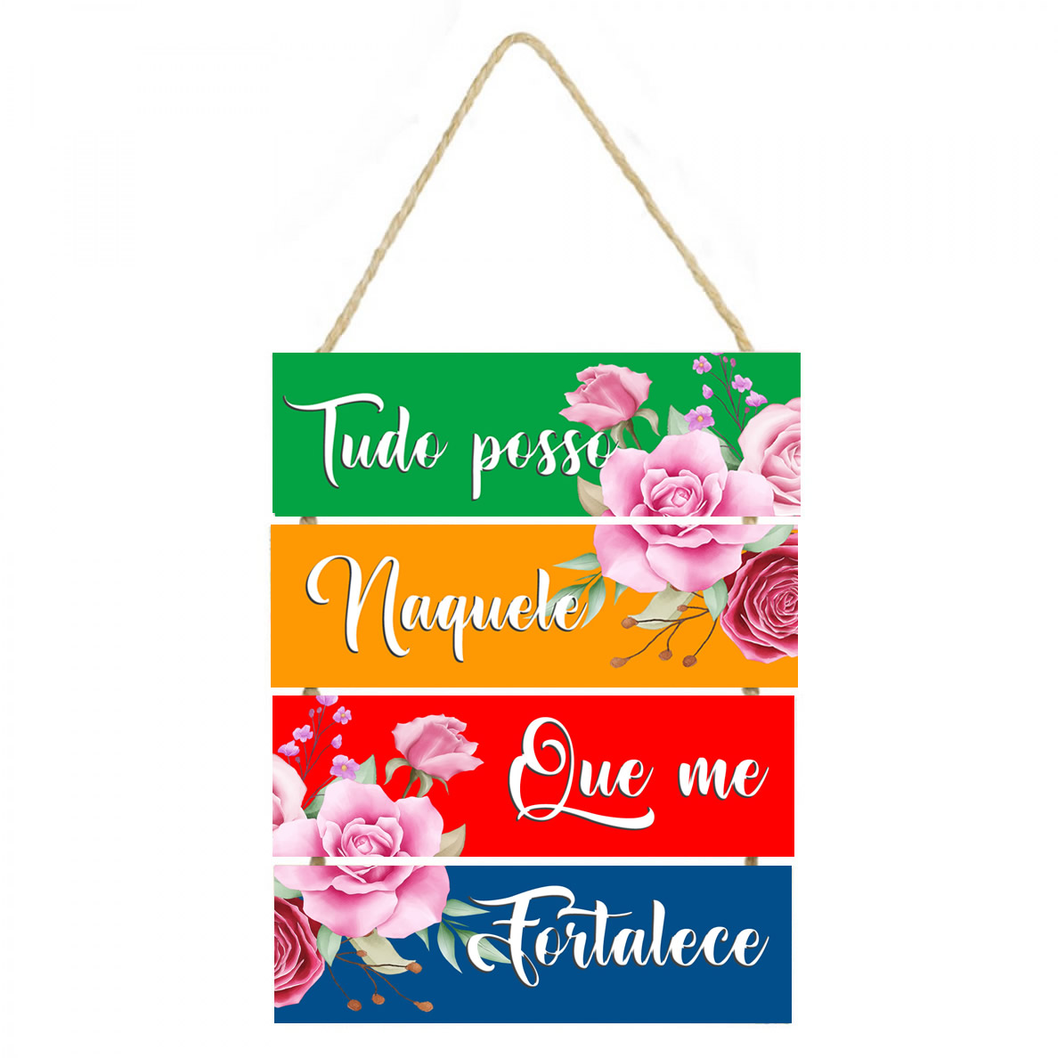 PL262 | Placa decorativa Tudo posso naquele que me fortalece PL262 | Personalizados | Placas decorativas de parede com frase Placa decorativa feito em mdf com corda de sisal Imagem impressa em papel Couchê de alta qualidade, placas em MDF 6 mm, corda sisal resistente. Medida total ... | R$17,00 |
