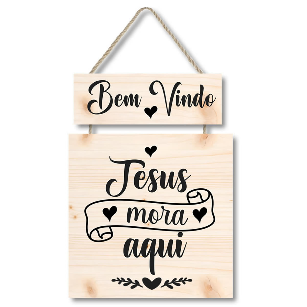 674 | Seja bem-vindo Jesus mora aqui PL296 | Personalizados | Placa decorativa: 'Seja bem-vindo Jesus mora aqui'. Encante-se com nossa seleção exclusiva. Decore com calor e estiloFeito em mdf, impresso em papel de alta qualidade Preso com corsa sisal, ideal par... | R$20,00 |