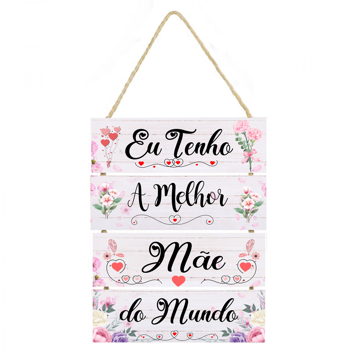 PL149 | Placa decorativa Eu tenho a melhor mãe do mundo PL149 | Personalizados | Placa decorativa feito em mdf com corda de sisal Imagem impressa papel Couchê de alta qualidade, placas em MDF 6 mm, corda sisal resistente. Medida total do Quadro: São 4 plaquinhas em mdf presa... | R$25,00 |