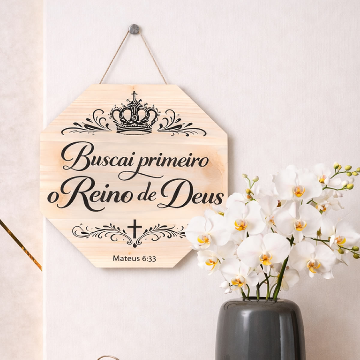PL411 | Placa Decorativa Octagonal "Buscai Primeiro o Reino de Deus" - Decoração Cristã em MDF | Livros e Revistas | Placa Decorativa Octagonal "Buscai Primeiro o Reino de Deus" - Decoração Cristã em MDF Transforme seu ambiente com esta linda placa decorativa octagonal que traz a po... | R$20,00 |