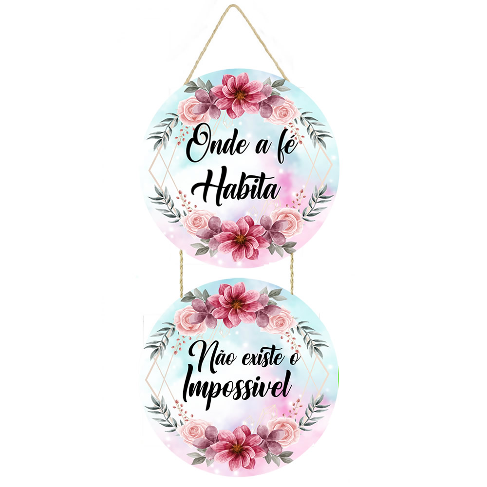 PL079 | Placa decorativa Onde fé habita não existe impossível PL079 | Livros e Revistas | Placas decorativas de parede com frase Placa decorativa feito em mdf com corda de sisal Imagem impressa em papel Couchê de alta qualidade, placas em MDF 6 mm, corda sisal resistente. Medida total ... | R$15,00 |