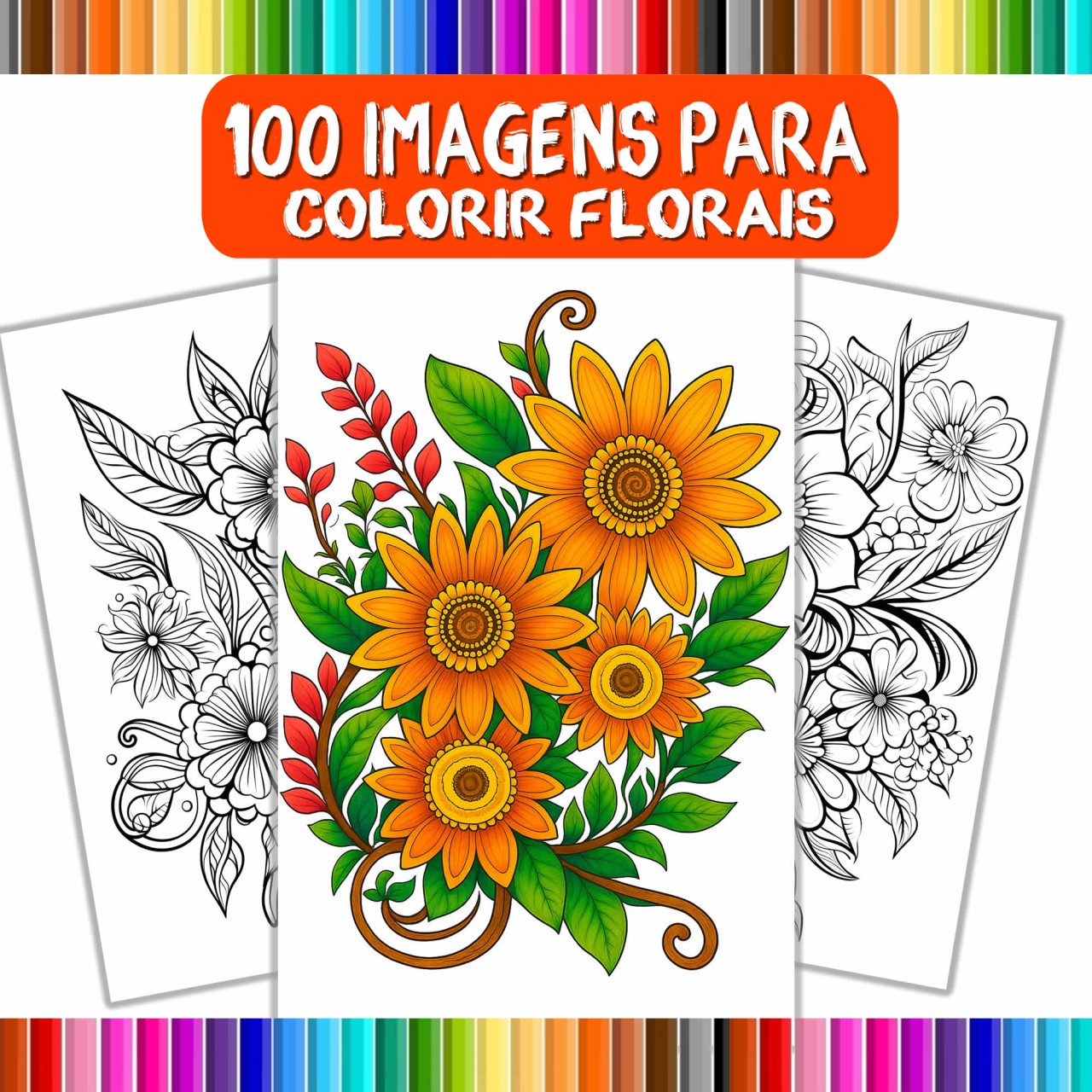 600 | 100 imagens de flores para Colorir | Livro para colorir | Descubra a magia das flores com nosso kit com "100 imagens de flores para Colorir"São 100 páginas repletas de desenhos encantadores, este kit oferece a oportunidadeperfeita para relaxar, liberar sua ... | R$40,00 |