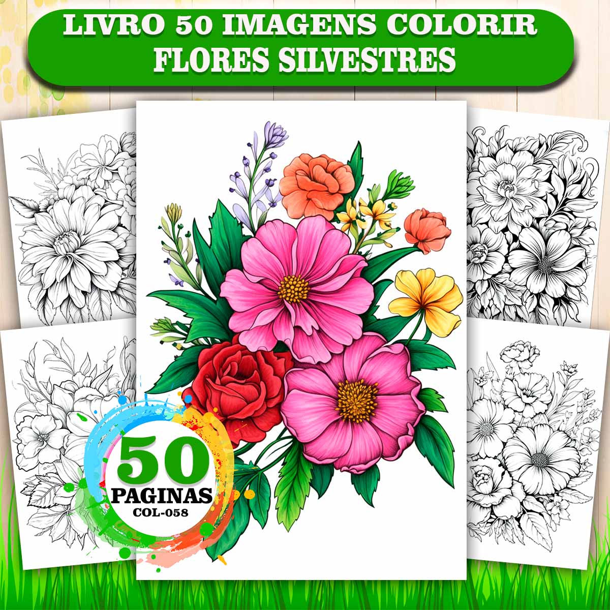 COL058 | Livro de colorir adulto antiestresse flores silvestres | 50 imagens relaxamento COL058 | Livro para colorir | Você busca uma atividade para relaxar a mente após um dia estressante? Descobriu que colorir para aliviar a ansiedade pode ser a solução perfeita? Apresentamos o Livro de... | R$27,00 |