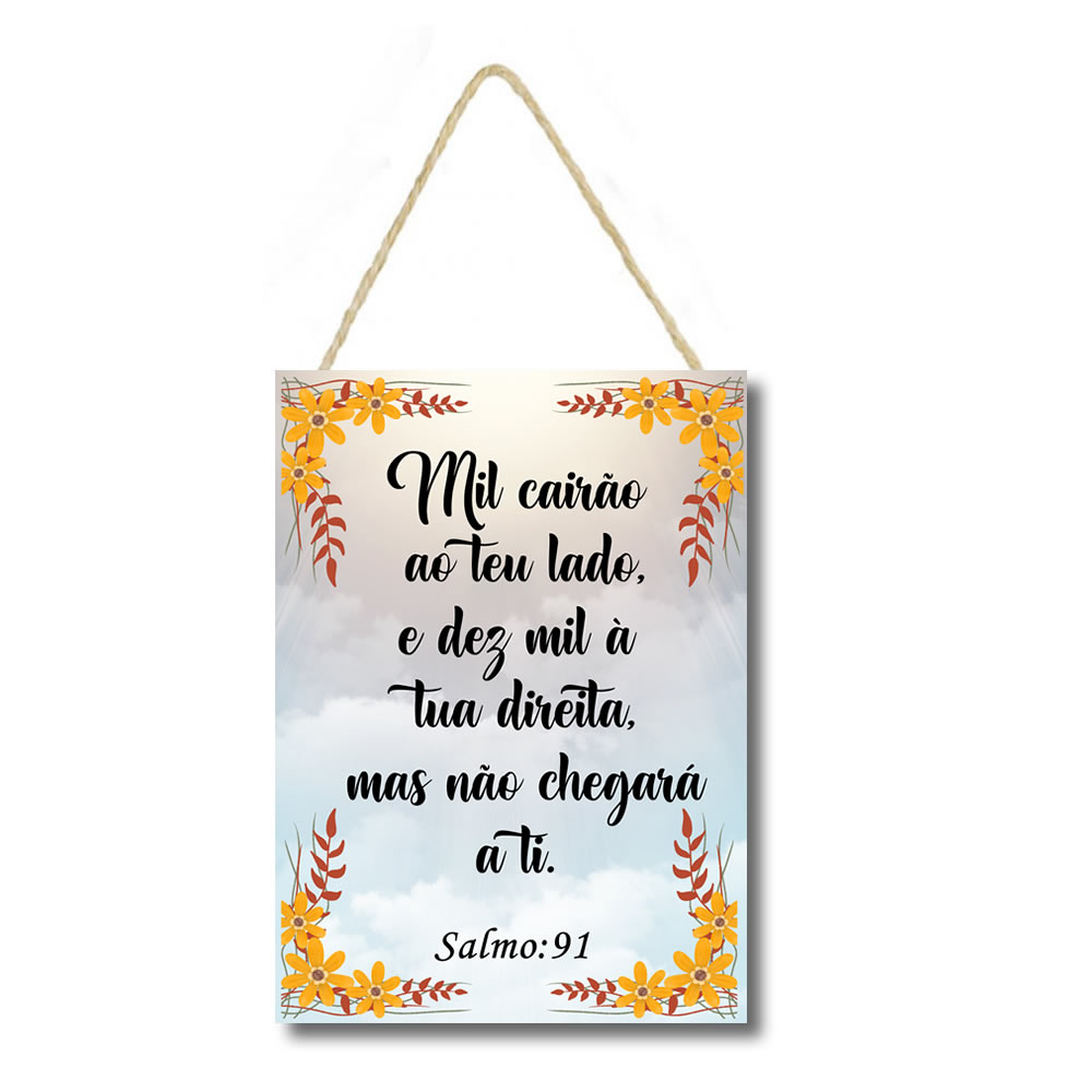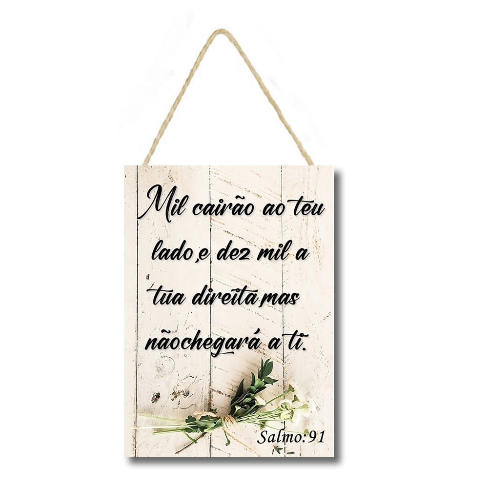 607 | Placa decorativa mdf Salmos 91:7 PL231 | Personalizados | Feito em mdf, impresso em papel de alta qualidade Preso com corsa sisal, ideal para portas de entrada de salas e cozinhas Medidas : 0,29 cm de altura 0,20 cm de comprimento Placa de 0,06 mm Pr... | R$17,00 |