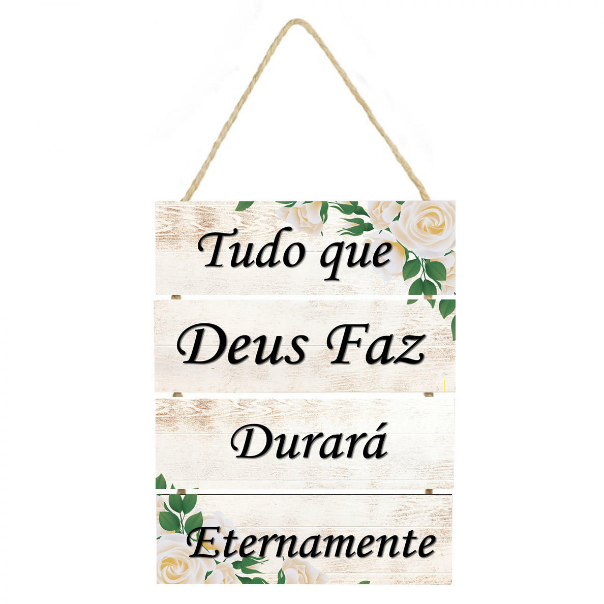 PL104 | Placa decorativa Tudo que Deus faz durará eternamente PL104 | Personalizados | As placas decorativas em MDF são ótimas opções para adicionar uma mensagem pessoal ou inspiradora ao seu lar ou escritório. Elas são feitas de uma mistura de fibras de madeira e resina, o que as torna... | R$25,90 |