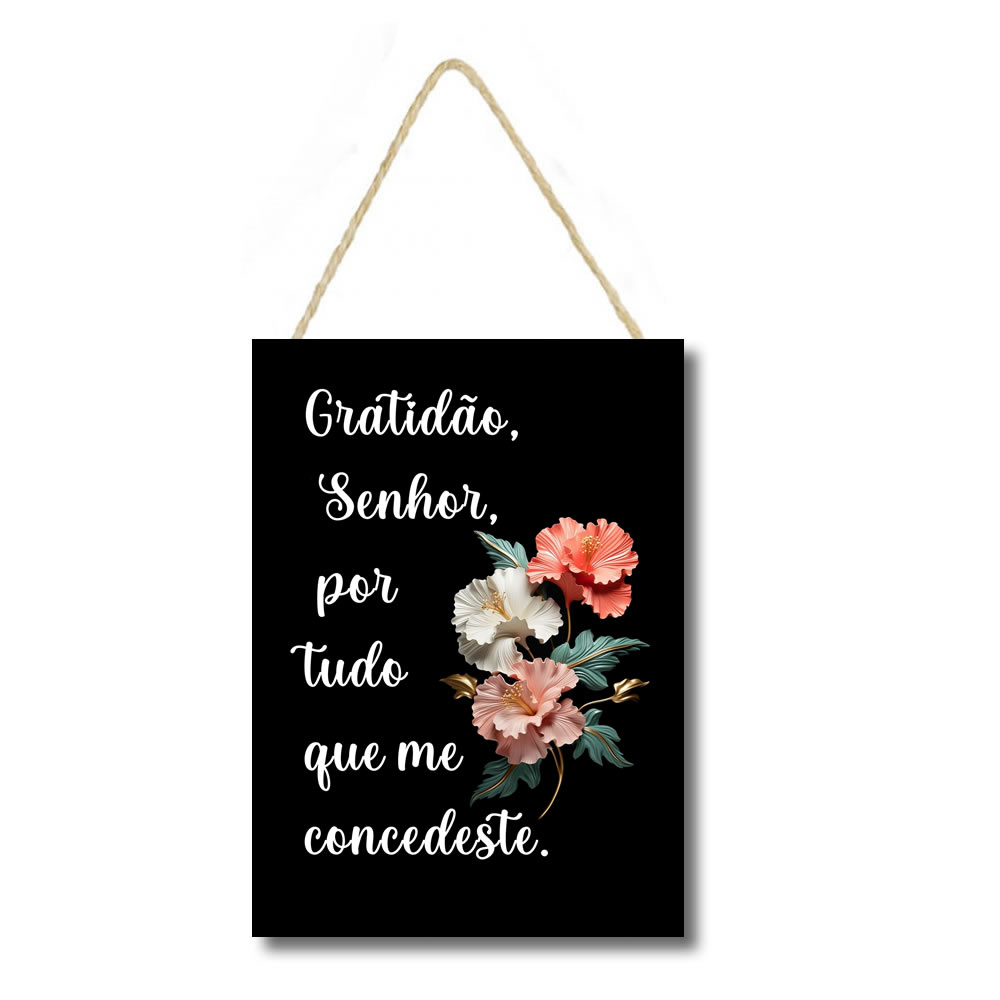 PL034 | Placa decorativa 034 frase Acrescente gratidão ao seu dia | Livros e Revistas | Placa decorativa feito em mdf com corda de sisal Imagem impressa papel Couche de alta qualidade, placas em MDF 6 mm, corda sisal resistente. Medida total do Quadro: São 3 plaquinhas em mdf presas... | R$20,90 |